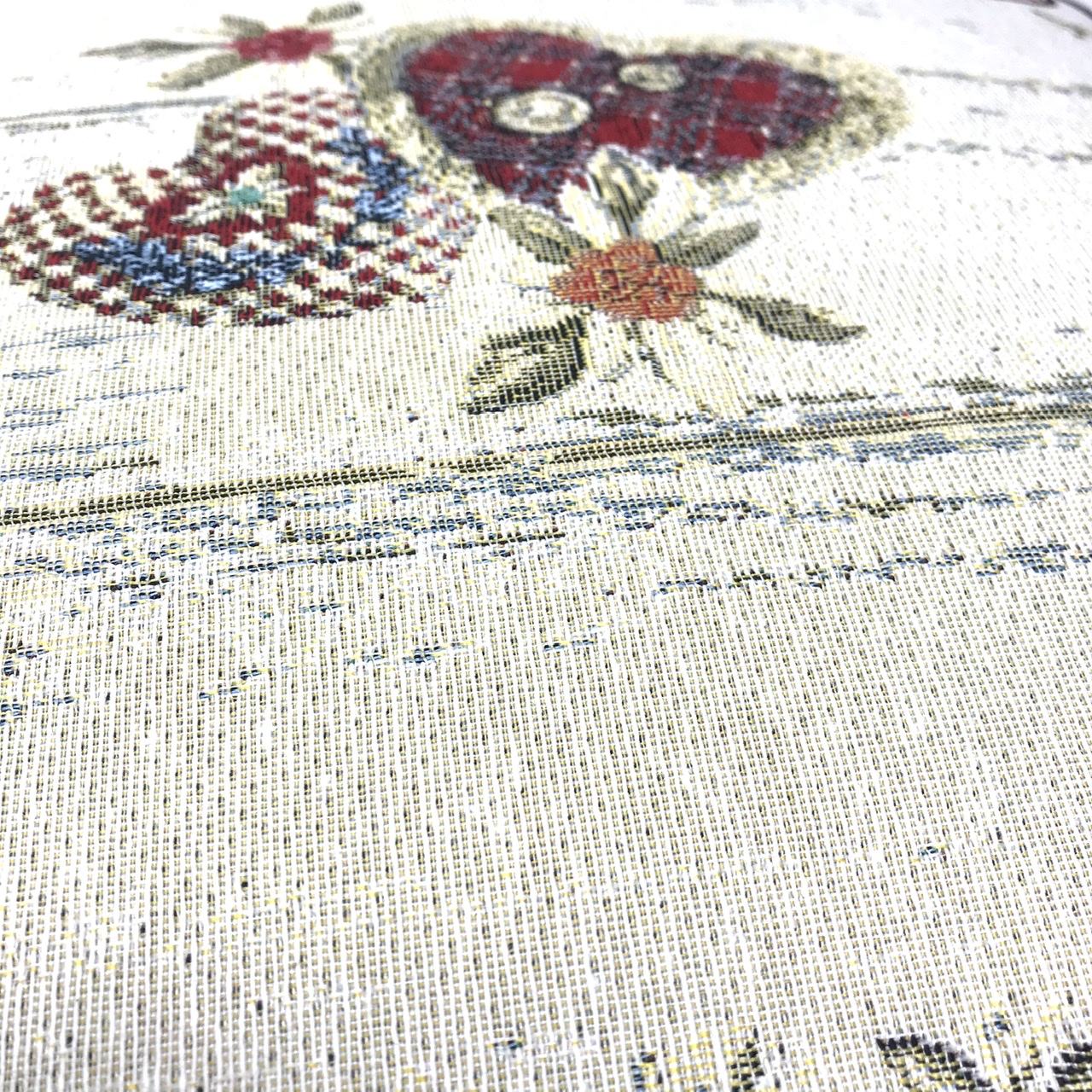 Cuscino federa in tessuto gobelin shabby chic, cuori e fiori, 44×44 cm, alpinestyle
