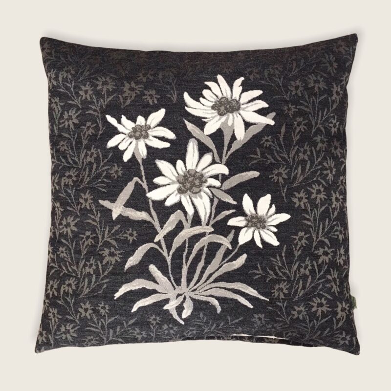 Federa cuscino, stelle alpine, LADIN PIAZZATO, grigio scuro, 54 x 54 cm