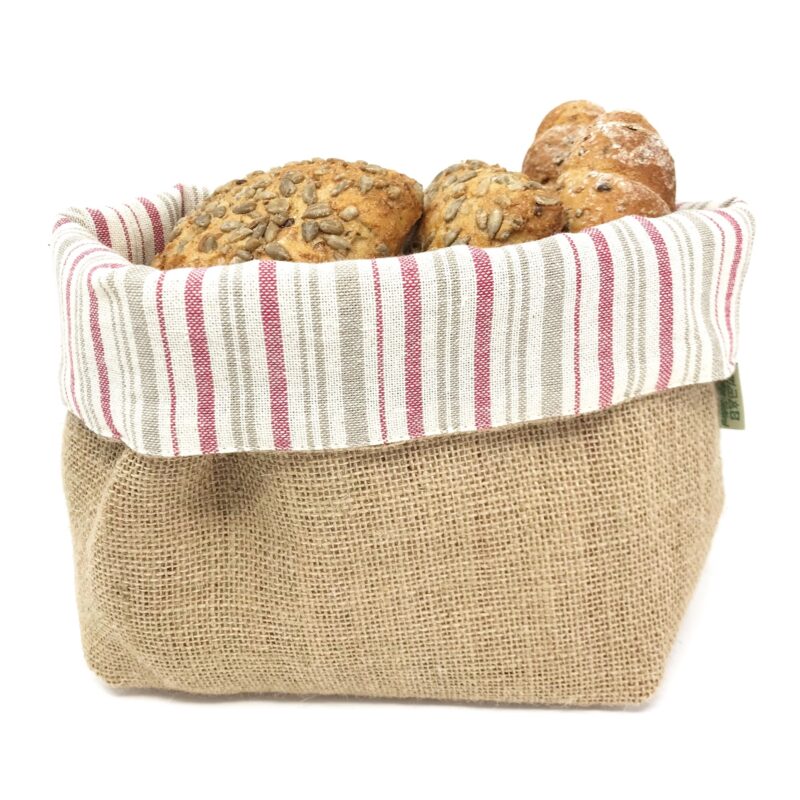 Gaidra Cesto Cestino Porta-Pane in Tessuto Iuta e Cotone Doubleface – Sacchetto di Design Fatto con qualità Artigianale in Fibre Naturali – Rigato, rosso, 28 x 20 x 10 cm