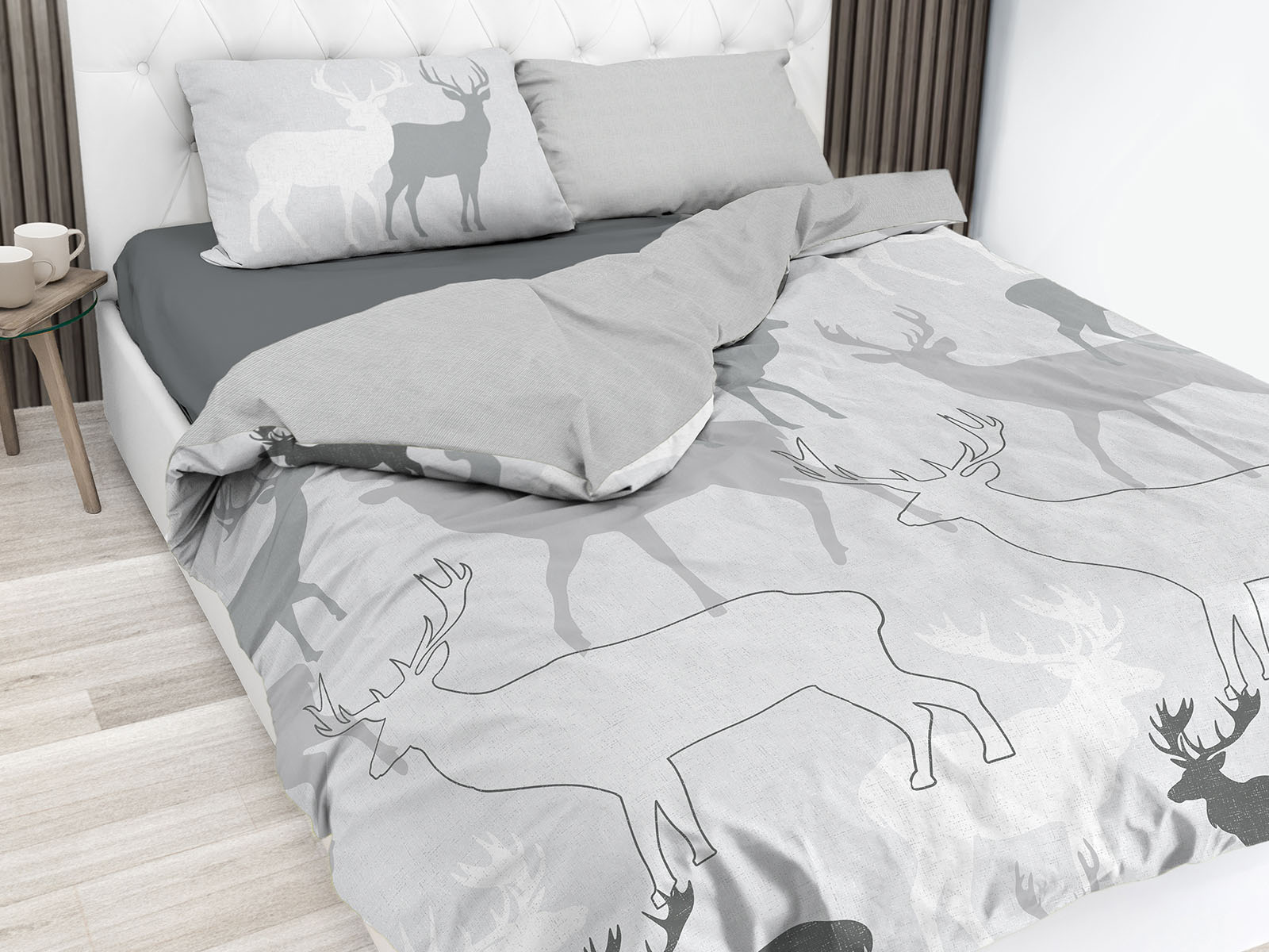 Parure copripiumino con cervi, in puro cotone – ROCHER grigio