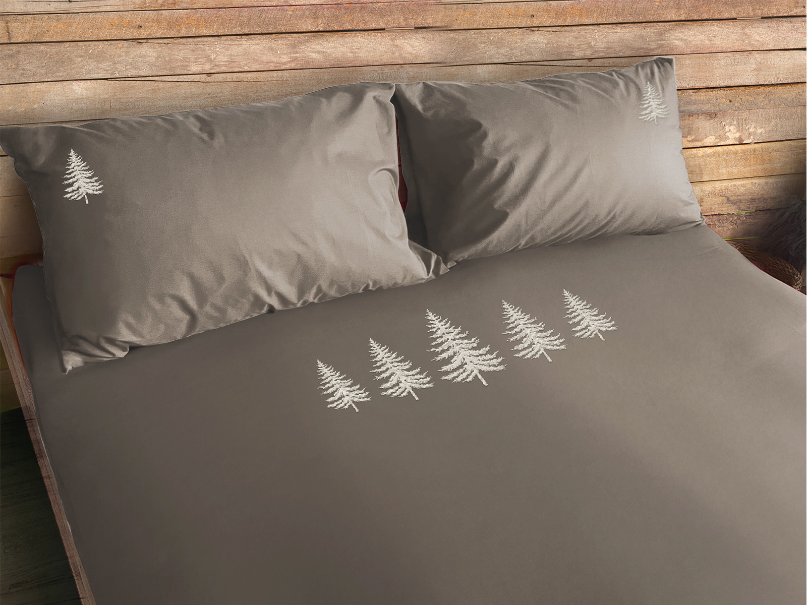 Parure copripiumino satinato ricamo alberi – TREE tortora